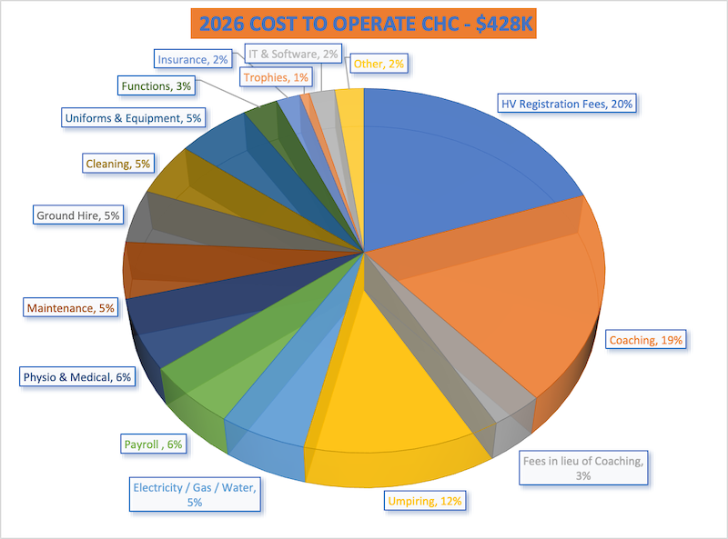 The Board wants to inform you that this year, we will be implementing a 5% increase in membership fees. While we understand that any increase can be challenging, it's important to note that even with this adjustment, our club remains one of the most affordable options in the area. The decision to raise fees was not taken lightly, and it reflects the various costs associated with running our club effectively, as detailed in the graph below.